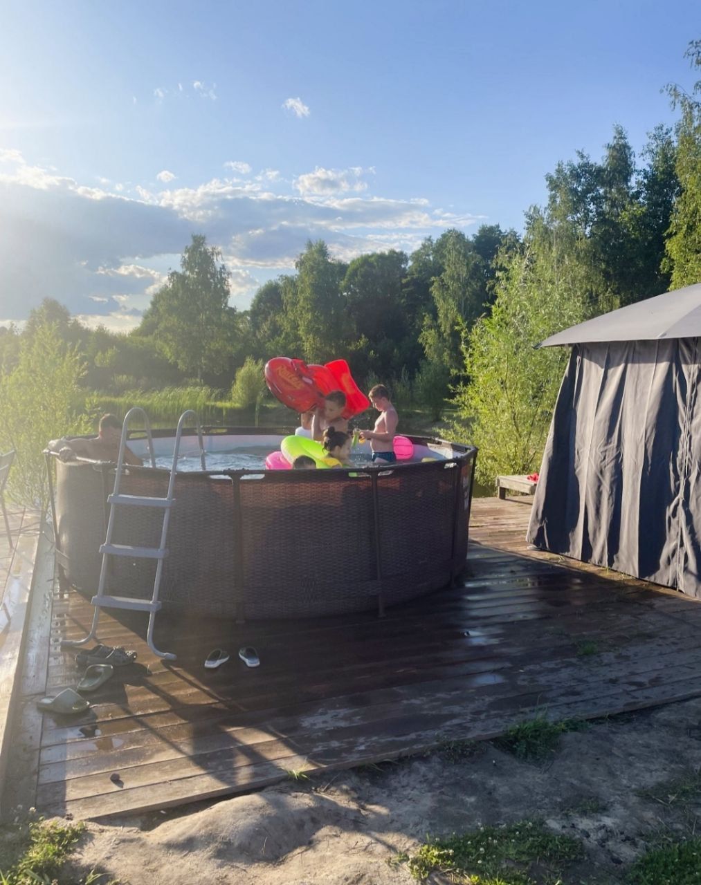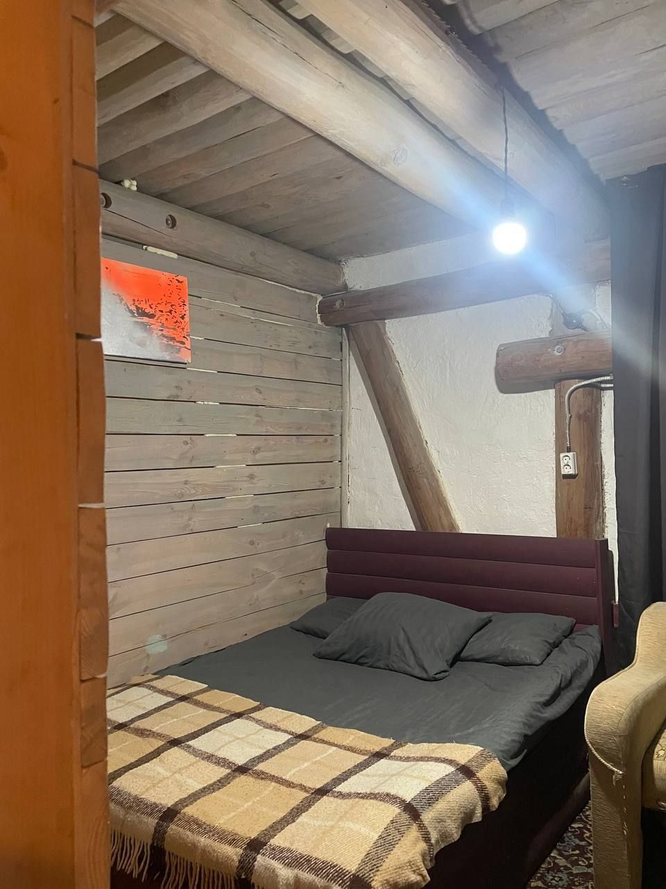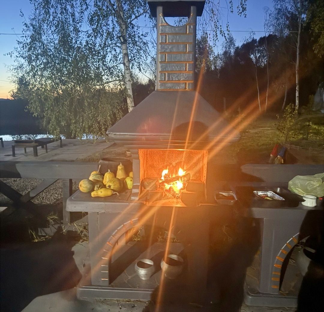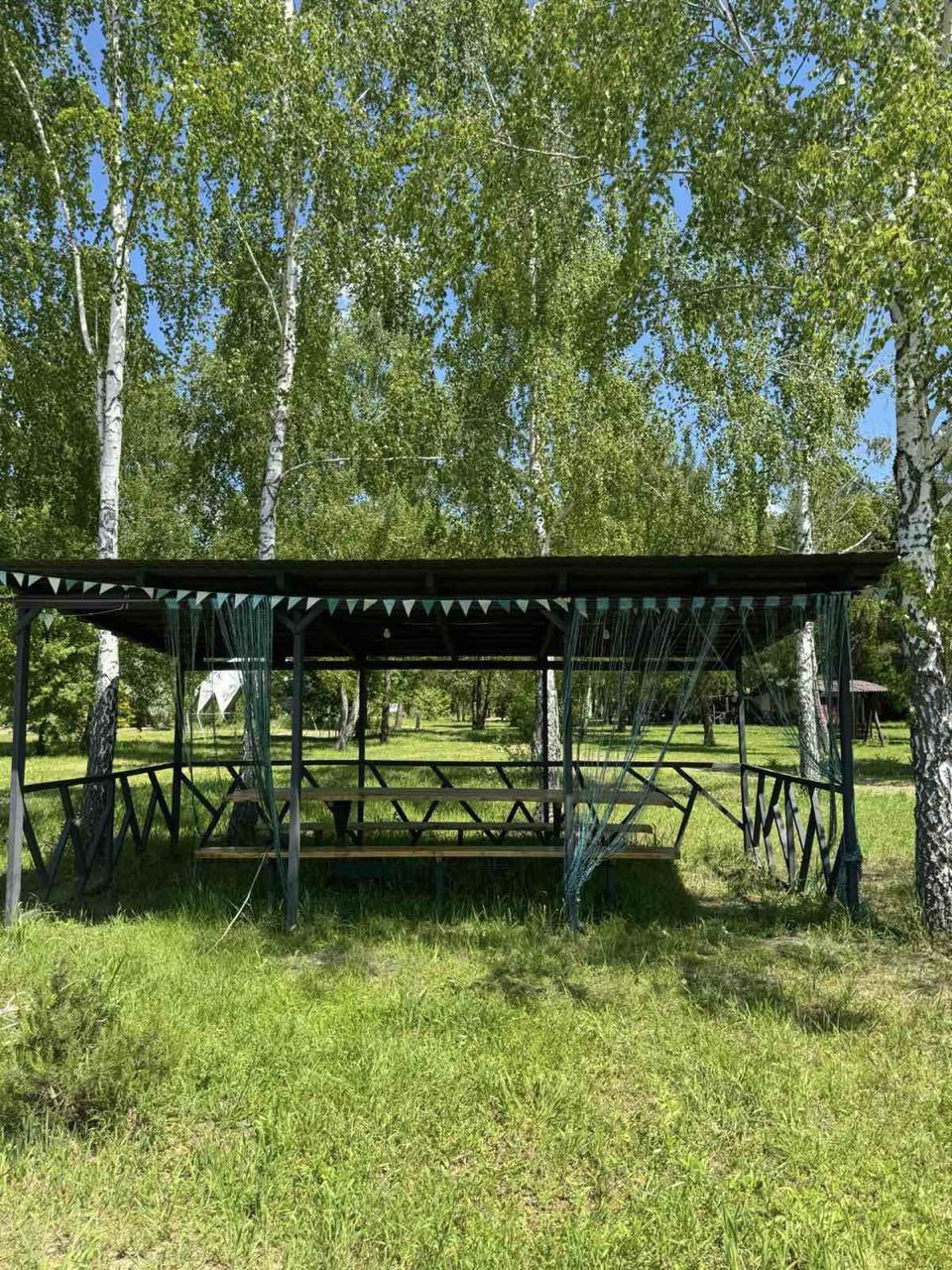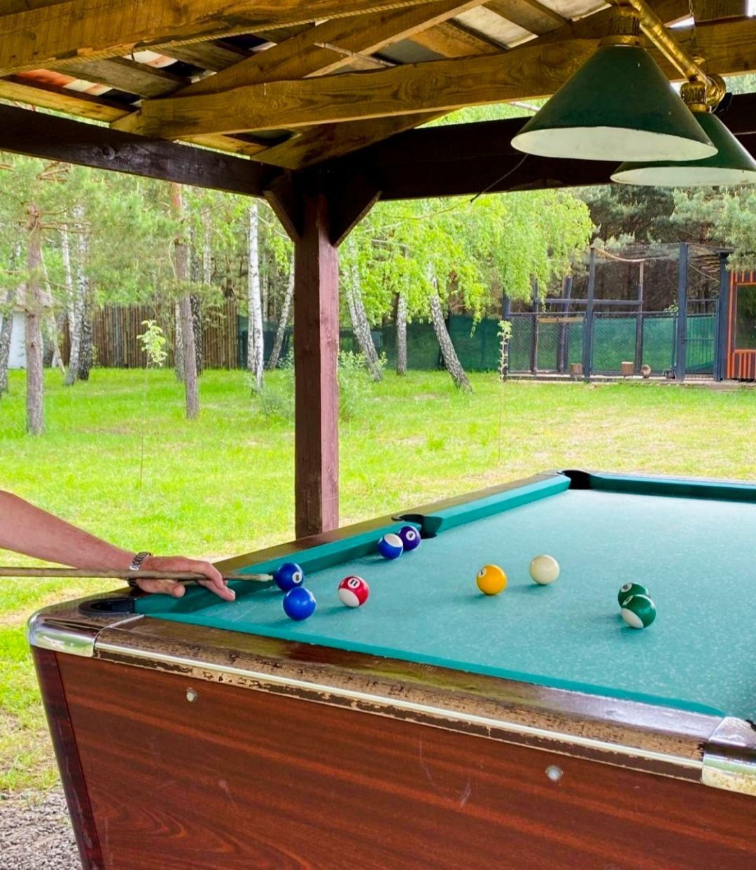 БУДИНОК #208 Будинок у сосновому бору Лазня та чан оплачується додатково. Будиночок із лазнею на дровах. У будинку тепло, є електрокамін, Wi-fi. Будинок повністю обладнаний для комфортного проживання, є все необхідне: електрочайник, холодильник, фен, праска, мікрохвильова піч, плита, посуд, душова кімната, кухня, барбекю. На території 3 будиночка, що дозволяє розмістити велику компанію. В одному будинку 4 спальних місця, у другому 6 спальних місць та в 3 будинку 15 спальних місць. (Кількість людей в будинках необмежена, тобто якщо будинок розрахований на 4 спальних місця, в будинку можуть бути будь-яка кількість гостей). Є дитячий майданчик. Для любителів активного відпочинку є більярд, можна прогулятися до озера, подихати свіжим хвойним повітрям.