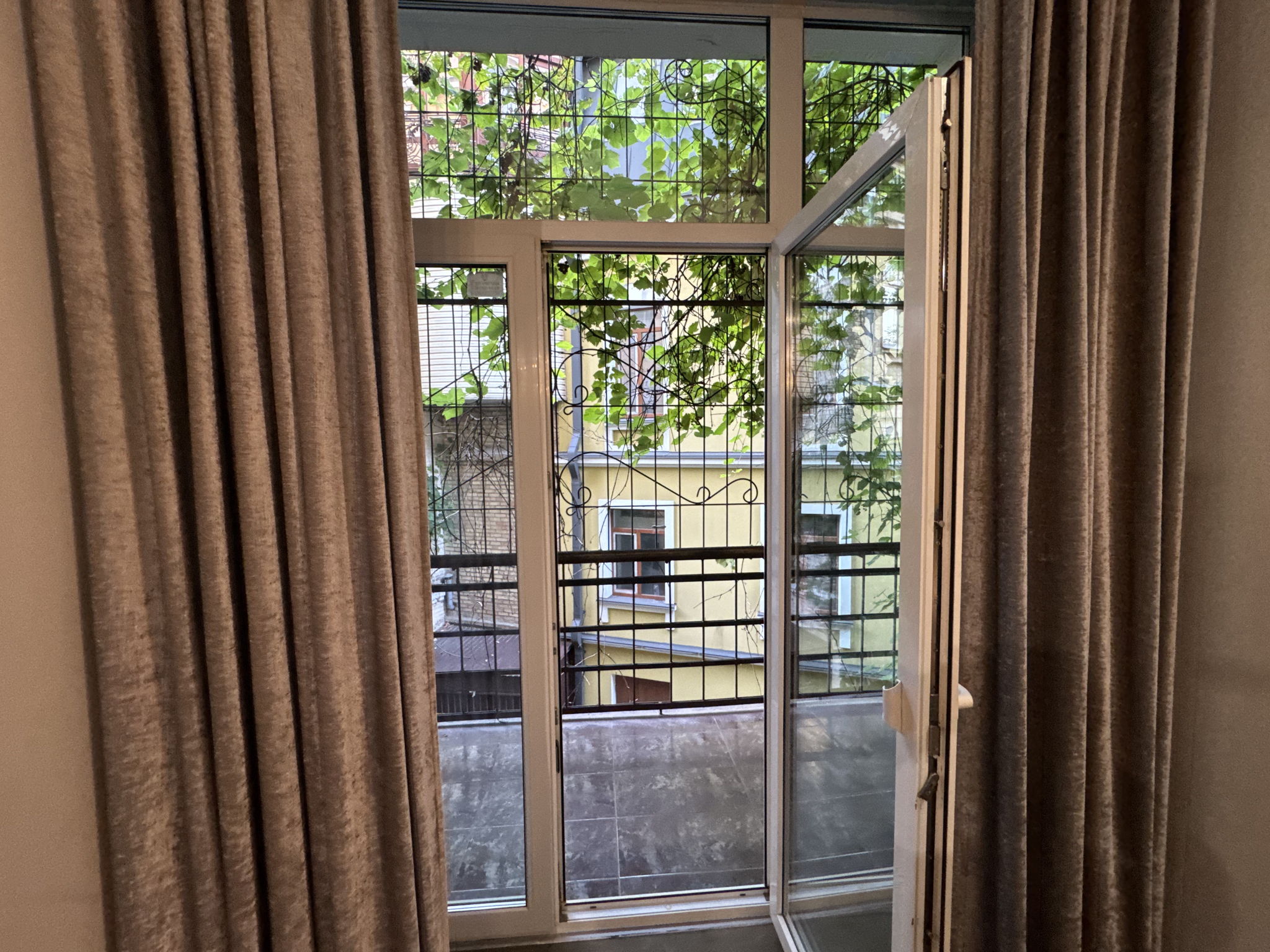 Квартира має фасадний вхід та вихід вікон та дверей у двір, що робить її максимально тихою та затишною.