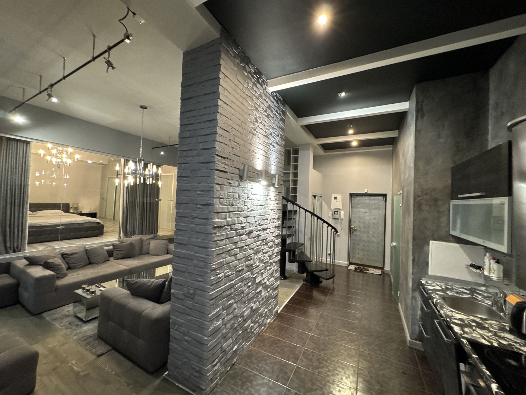 Стильна квартира 75кв.м. З дворівневою залою (на другому поверсі кабінет), спальнею, гардеробною кімнатою та санвузлом. Вся необхідна техніка є.