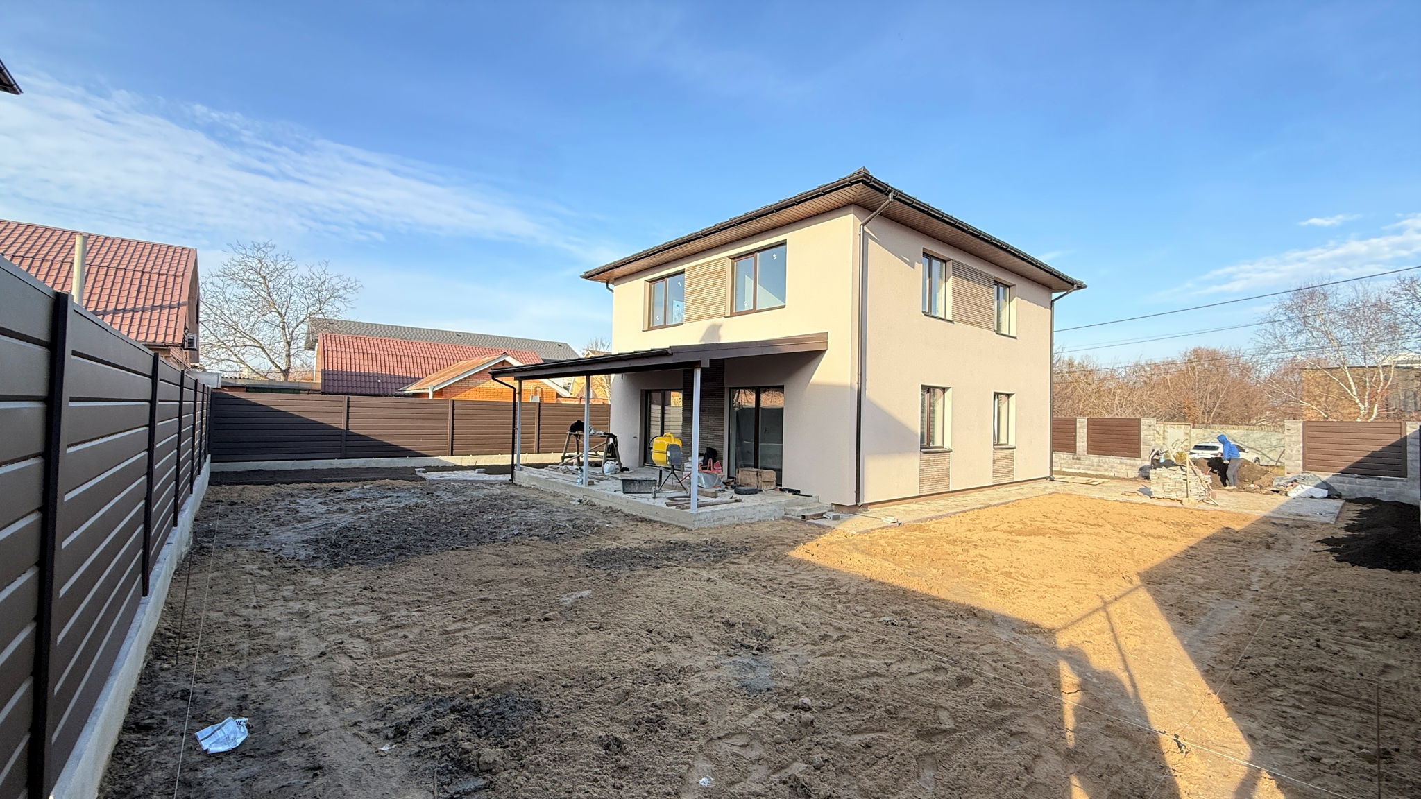 - огорожа з парканом (профлист + колони з декор. блоків) з бетонним фундаментом по периметру всієї ділянки;