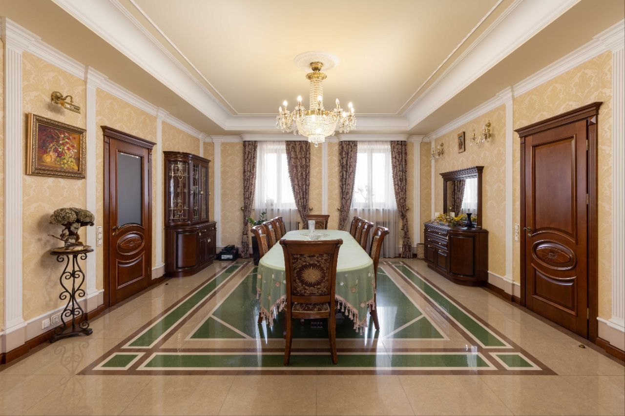 Вишуканий стиль ремонту, дороговартісні матеріали, мармурові підвіконня та підлога.