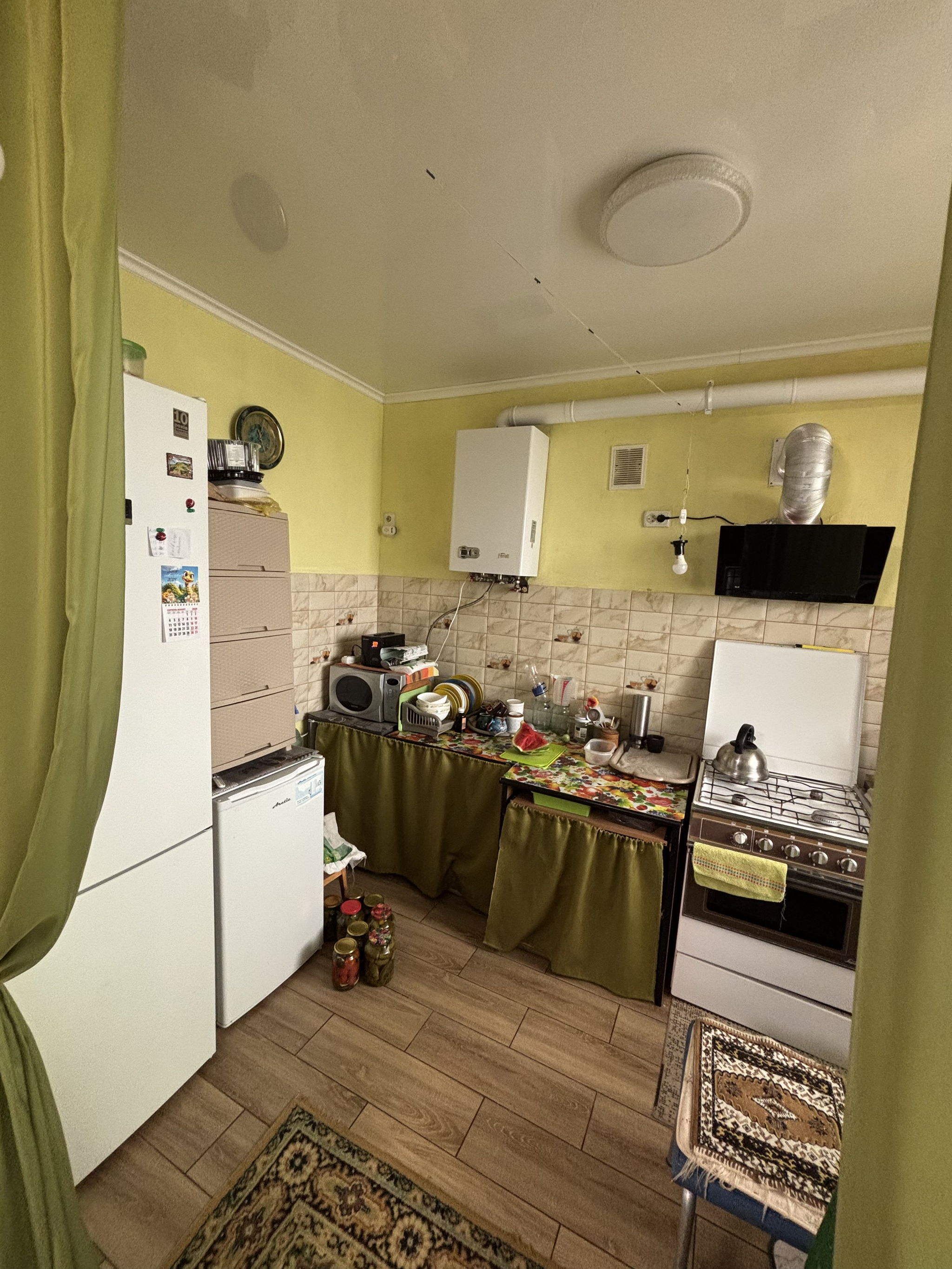 Індивідуальне газове опалення, всі міські комунікації. Має 3 житлові окремі кімнати, 2 санвузли. Власний передній двір. Побудований з цегли, утеплений.