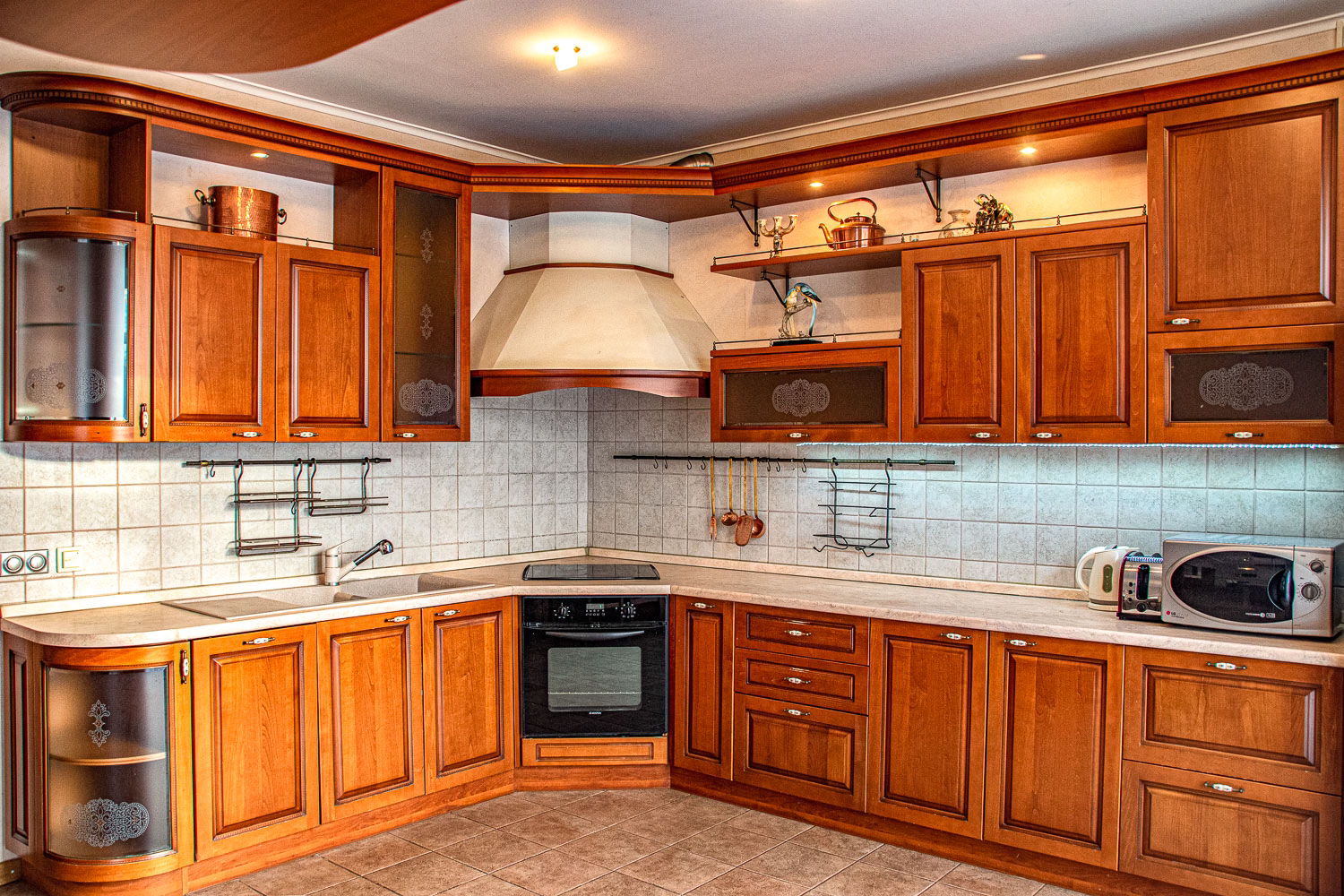 Створений з екологічних матеріалів. Знаходиться в містечку з власною охороною. Будинок має автоматичні ролети на вікнах, підвал-бомбосховище, автономне живлення (генератор), зарядку для електрокарів. Інтерєр в стилі модерн. Меблі. Вся необхідна побутова техніка. Камін. Підлога з підігрівом. Кондиціонери.