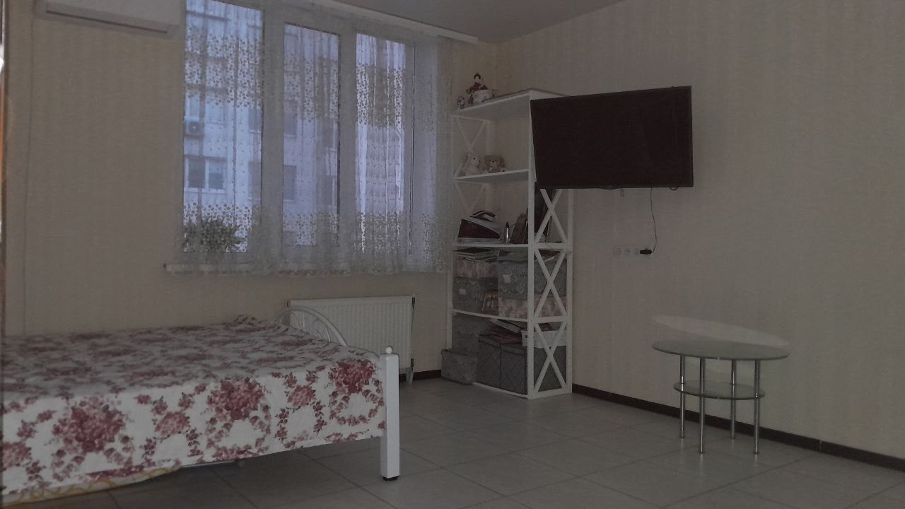 Вашій увазі пропонується простора та світла 1-кімнатна квартира у Вишгороді, загальною площею 37,1 кв.м. Кімната 22 кв. м, повністю укомплектована, є: велике ліжко, простора дзеркальна шафа-купе, телевізор, етажерка, журнальний столик.