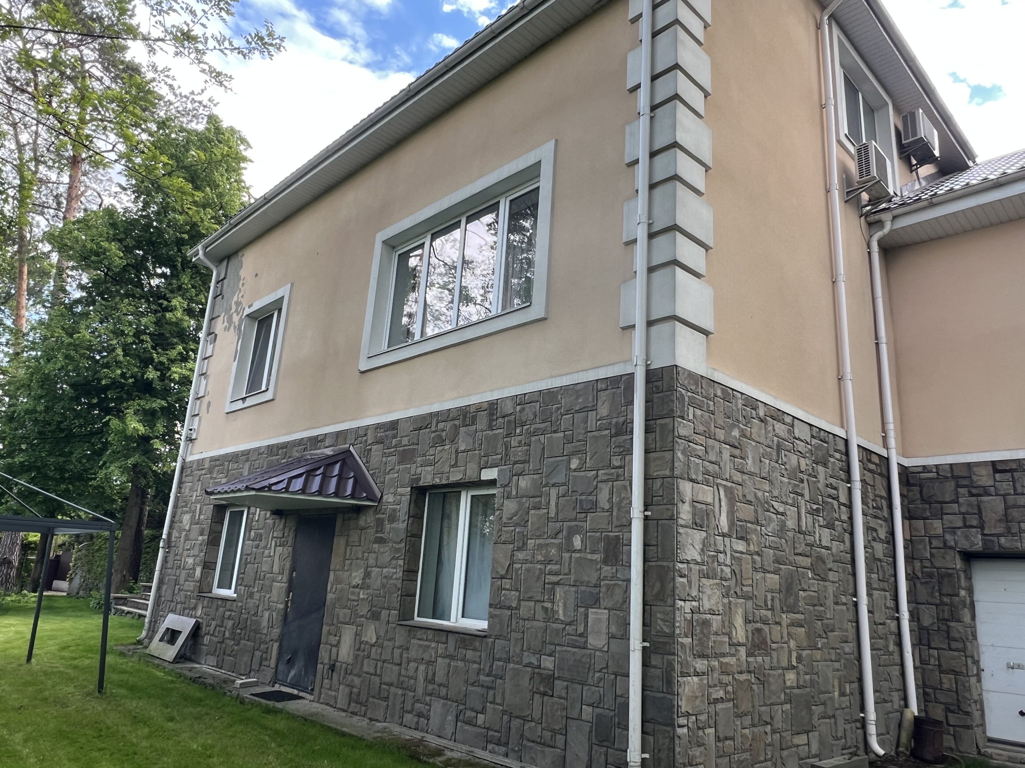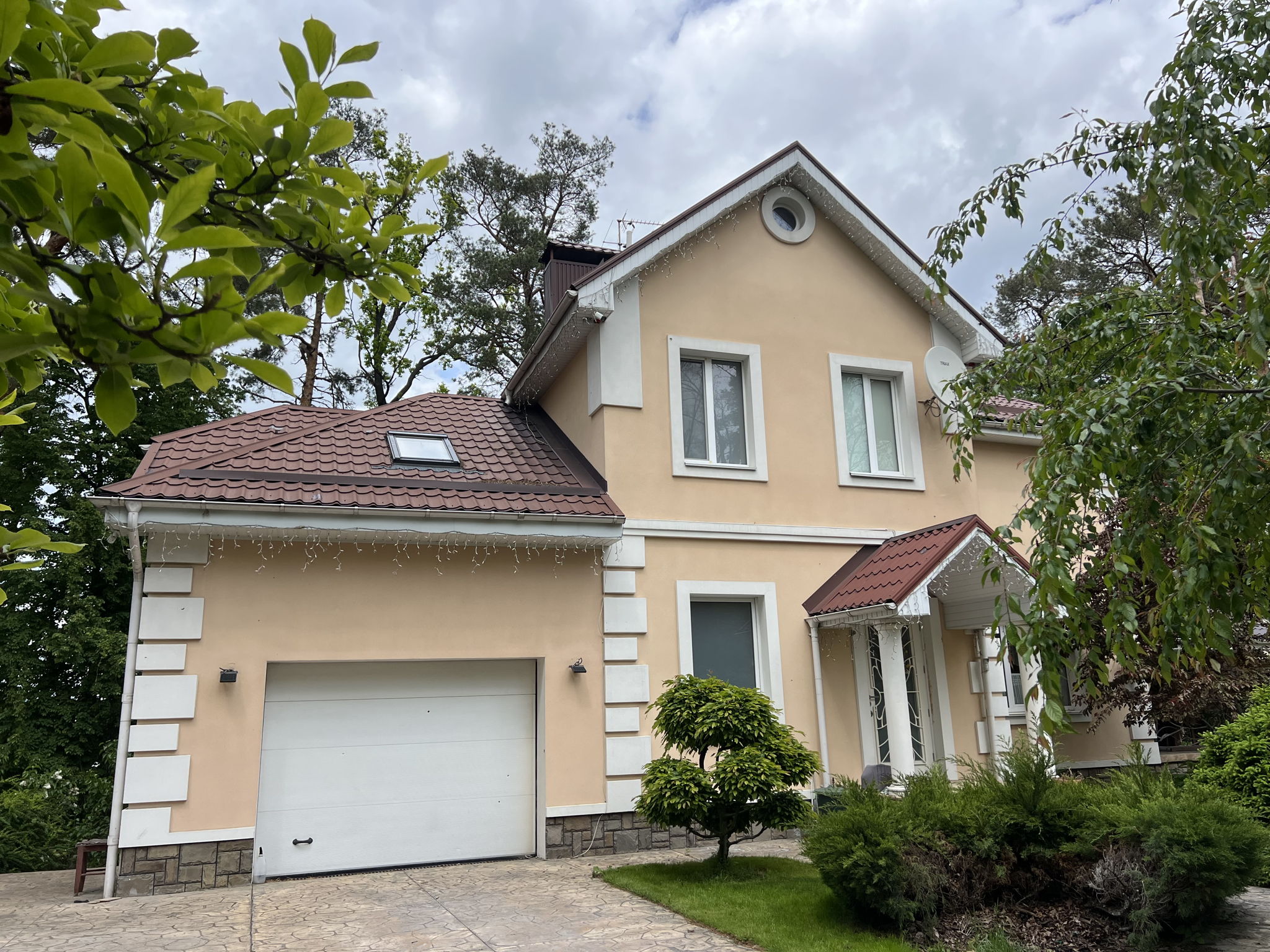 Продаж будинку площею 380 м2 на земельній ділянці в 21 сотку з ландшафтним дизайном. Будинок побудований для себе з якісних матеріалів та добротно. На ділянку є два заїзди в двір з різних сторін. Будинок включає 4 спальні кімнати з гардеробними та кондиціонерами. Є 4 гаражі, сауна, підвал, зона барбекю, альтанка, котельня. З тераси є вихід до великого басейну з шезлонгами. Для прийому гостей в будинку є велика вітальня площею 60 кв.м з каміном Для обслуговування будинку підведено міське водопостачання, міська каналізація , газ середнього тиску, додатково є свердловина глибиною 70 метрів. Для опалення будинку встановлено комбіновану систему : газовий та твердопаливний котел. Встановлено систему очищення води. Будинок введений в експлуатацію 2006 року. Оформлення 2% 500000$ Розглядаємо різні програми.