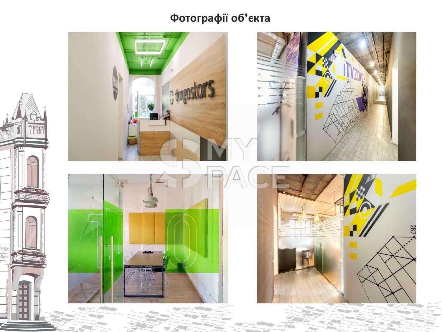 Будівля складається з 7 поверхів нежитлових приміщень с просторими кабінетами (висота стелі 4 м) і великою кількістю вікон, оснащена 2 ліфтами та автономною системою опалення(газова котельня). Є наземна парковка на 9