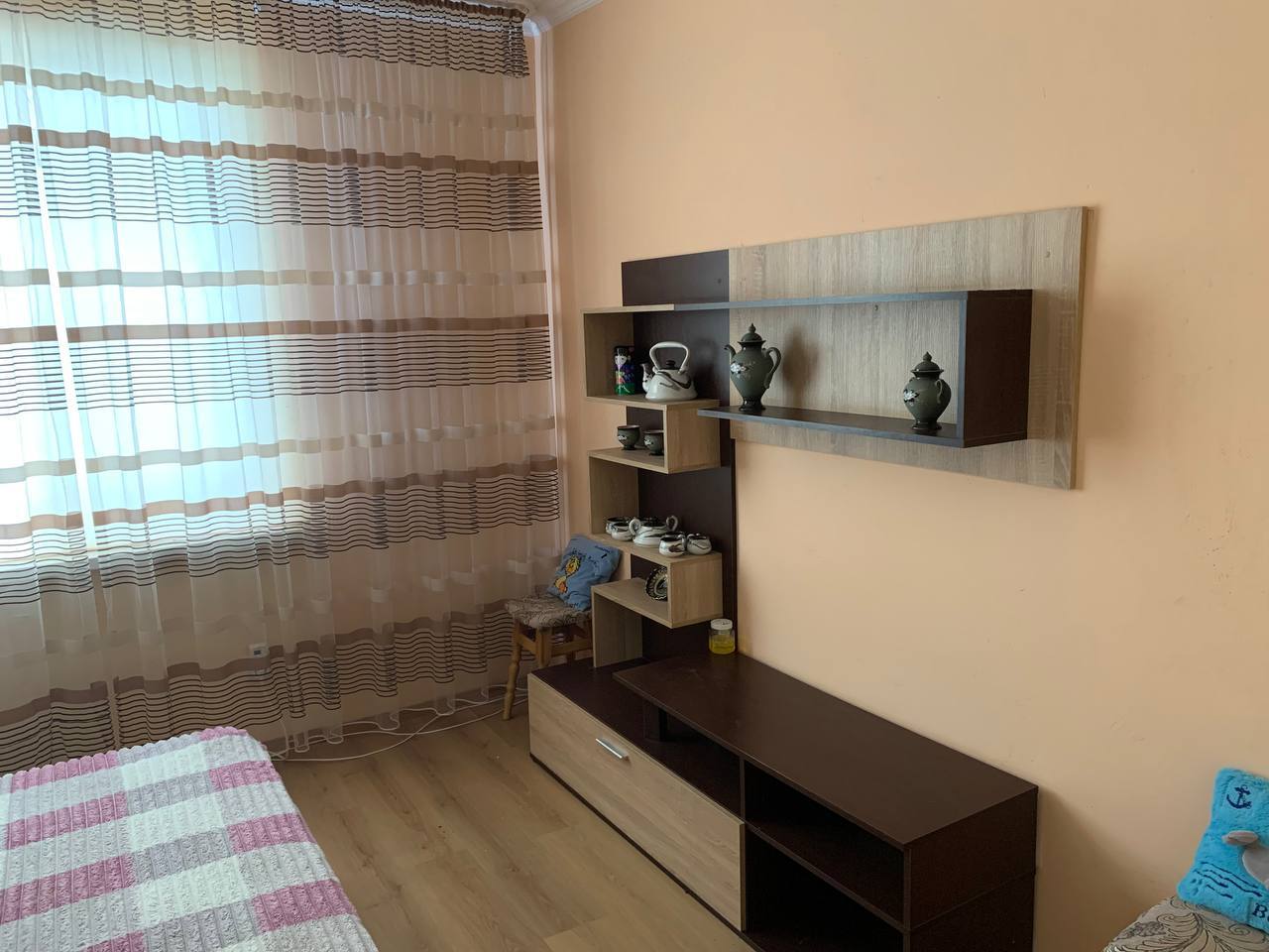Будинок має дві кімнати, вітальню та гардеробну, облаштований меблями та необхідною технікою, включаючи електроплиту, духова шафа, холодильник, чайник. В ванній кімнаті - ванна, бойлер та пральна машина.