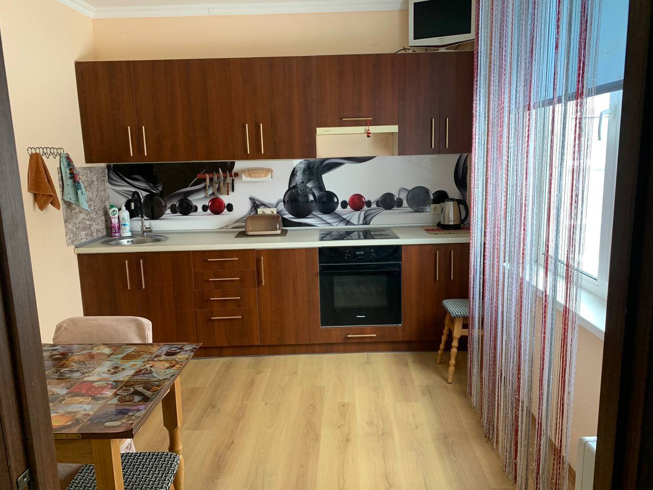 Загальна площа - 74, 5 кв. м., житлова - 49.5 кв. м., кухня - 9.4 кв.м.
