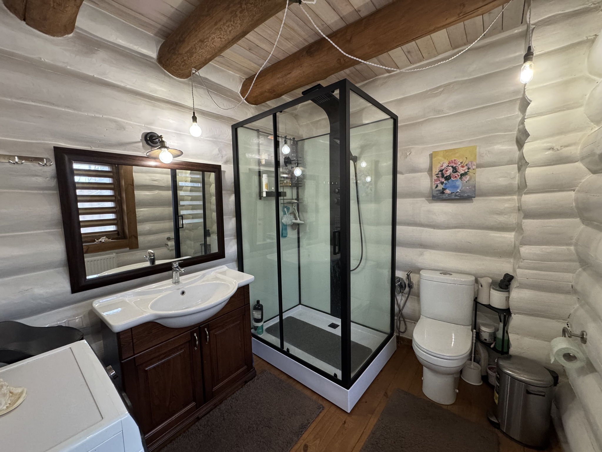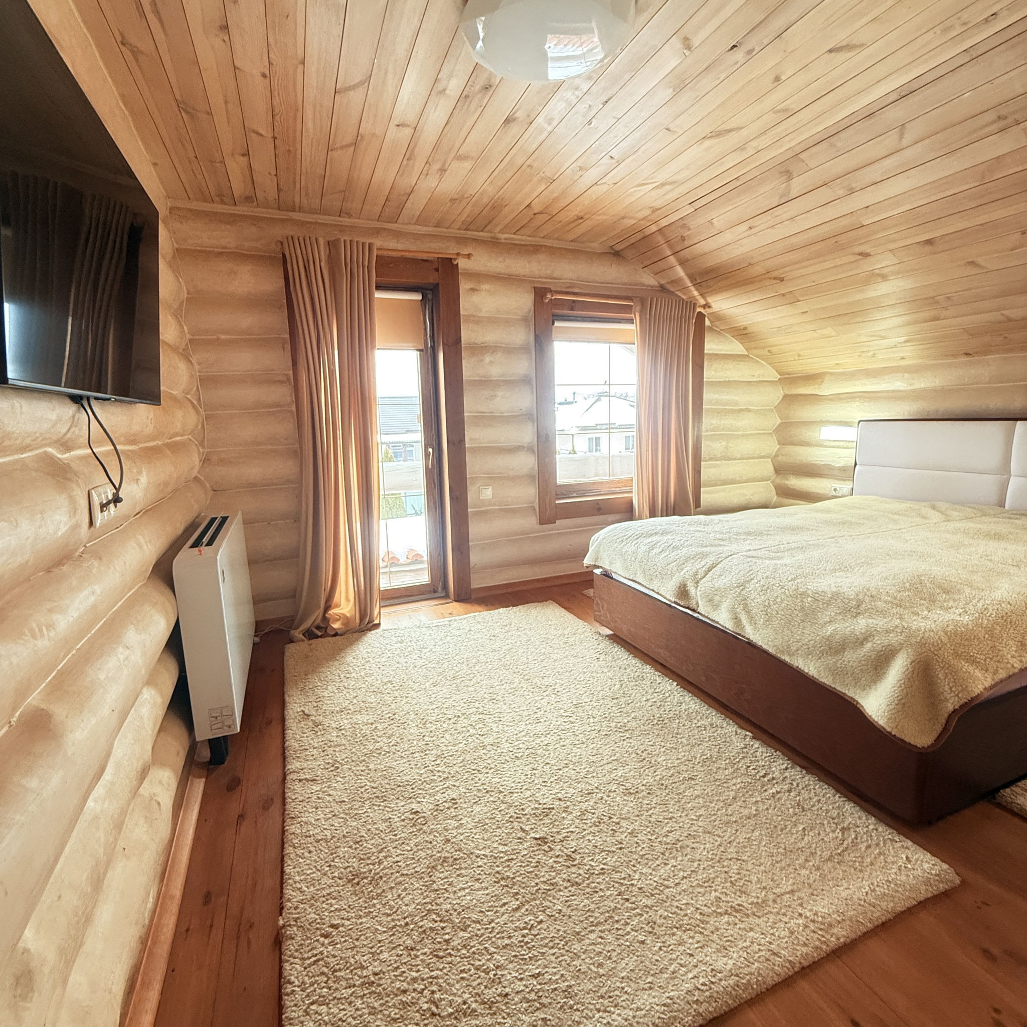 Продам від власника сучасний автономний екологічний будинок з дикого зруба.КМ Межріччя.Все зроблено з натуральних матеріалів.Будинок з 3 спальнями,велика вітальня з кухнею-студією з сучасним каміном на дровах.2 с/у з ванною та душовою кабіною, гардероб.Участок землі 10 соток.На ділянці декоративні та плодові дерева.Є додаткові забудови такі як окремий будинок з баней на дровах, в якій окрема кухня,гараж,Всі забудови покриті натуральною черепицею.Вода зі скважини, встановлені сонячні панелі 10 кВт з накопиченням батареї 15 кВт ,генератор на 7 кВт дизель,тепловий насос дуже економічний і потужний в зимку працює на опалення та гарячу воду, літом працює як кондиціонер!Для літнього відпочинку є сучасний відкритий вуличний басейн 7*3 повністю обладнаний сучасними фільтраціями, насосами.Зона відпочинку зроблена з натурального пісчаника.Автоматичні ворота в гараж і на вʼїзд.В будинку встановлена сігналізація. Освітлення всього масиву та охорона теріторії.Паркова зона біля річки Десна