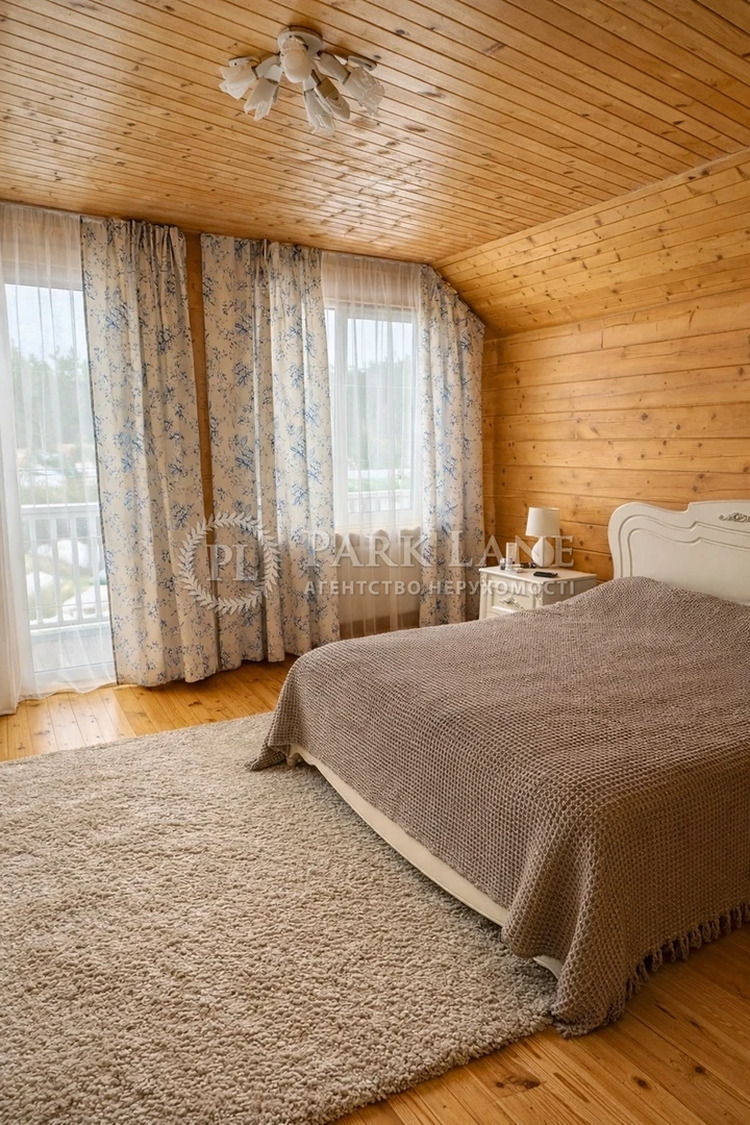 Заміська резиденція з басейном та прекрасною ландшафтною ділянкою! У продажу атмосферний заміський будинок із натурального дерева у стилі європейського шале, розташований на великій доглянутій ділянці поруч із лісом. Це місце, де поєднуються комфорт сучасного будинку та спокій життя серед природи. Будинок наповнений світлом і теплом натурального дерева. Високі стелі, великі панорамні вікна та камін у вітальні створюють особливу атмосферу затишку та простору. Функціональне планування будинку: • 5 просторих спалень • 2 гардеробні кімнати • велика кухня • простора вітальня з каміном • пральня • світлі мансардні кімнати. Територія ділянки — це окремий простір для відпочинку: • відкритий басейн • альтанка для зустрічей та відпочинку • зона барбекю з піччю • баня • господарський будиночок • ландшафтний дизайн • газон з автоматичним поливом • фруктові дерева та декоративні туї • система охорони. Ідеальний вибір для тих, хто шукає простір, спокій і життя поруч з природою.