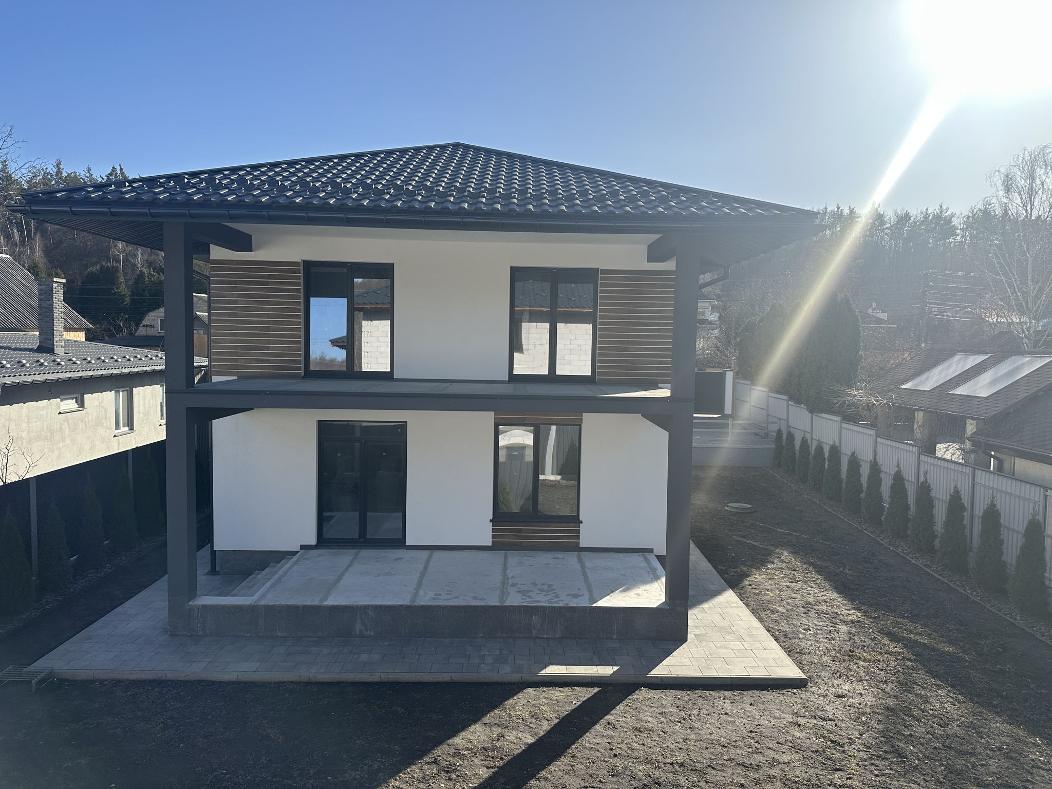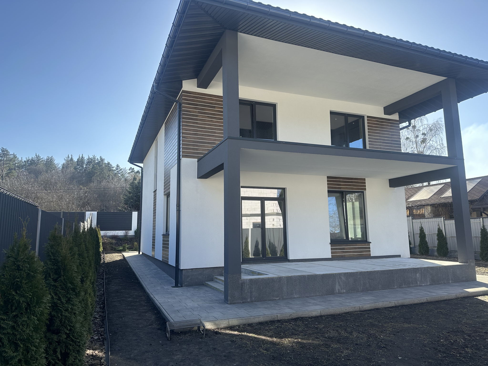 Будинок збудований з високоякісних матеріалів, дах Ruukki, вікна Rehau, утеплювач 100 вата, стеля 200 Knauf.