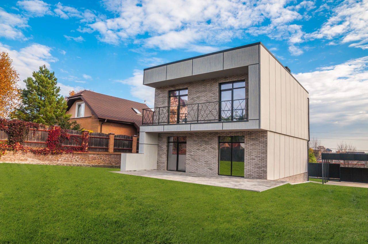Продаж двоповерхового будинку в стилі Hi-tec в селі Іванковичі з ділянкою 8 соток,готовий під внутрішній ремонт у середині.