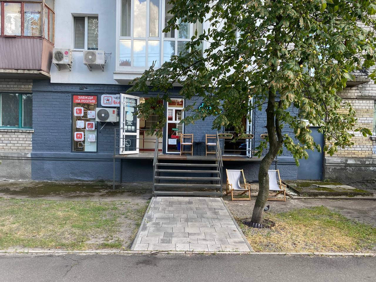 Локація у густонаселеному спальному районі забезпечує постійний потік потенційних клієнтів. Поруч розташовані зупинки громадського транспорту, супермаркет АТБ та аптеки, що додатково підсилює трафік.