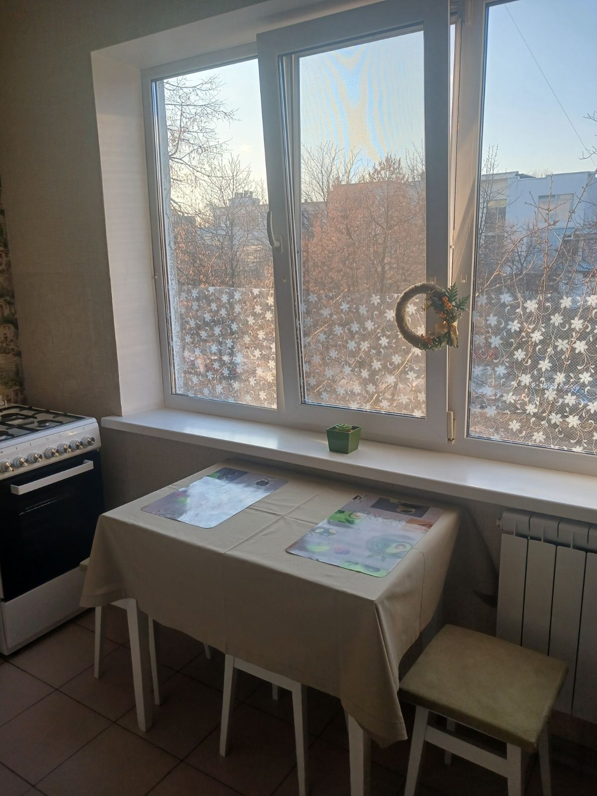 Вулиця Деміївська 55. До метро Голосіївська пішки 10 хвилин, поряд Голосіївський парк.Хороший стан,склопакети ,кахель в с/в,ламінат ,балкон засклений .В квартирі є холодильник,пральна автомат,газова плита ,телевізор ,бойлер власники встановлять при потребі,меблі,кухонні меблі ,інтернет ,лічильники на воду і електроенергію ,душ.Хороша транспортна розв'язка і розвинута інфраструктура .Без тварин. Для одного чи пари.