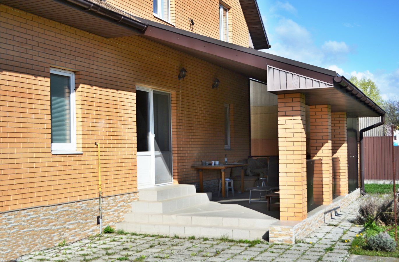 Трифазне електропостачання з окремими стабілізаторами (на кожну фазу). Встановлено бензиновий генератор потужністю 6,5 кВт з автоматичним вмиканням у разі зникнення напруги в мережі. Газовий (з джерелом безперебійного живлення) та електричний опалювальні котли, бойлер для підігріву води. Водопостачання - особиста свердловина глибиною 60 метрів з фільтраційною системою очищення води. Чотири накопичувальні ємності (септики): для фекальної води (з вентиляцією) та відведення дощової (талої) води. Відеонагляд, домофон, сигналізація, провідний Інтернет. На території: літня кухня з барбекю, господарче приміщення, погріб, теплиця з полікарбонату, літній душ з вбиральнею, вольєр площею 13 кв.м., садок, газон з автоматичним поливом, город площею 7 соток. У садку: яблуні літніх та осінніх сортів, сливи, персики, вишні, черешня, айва, груша, смородина, виноград. По периметру ділянки паркан з профільного листа (фасадна частина на фундаменті з каменю). Автоматичні розсувні ворота.