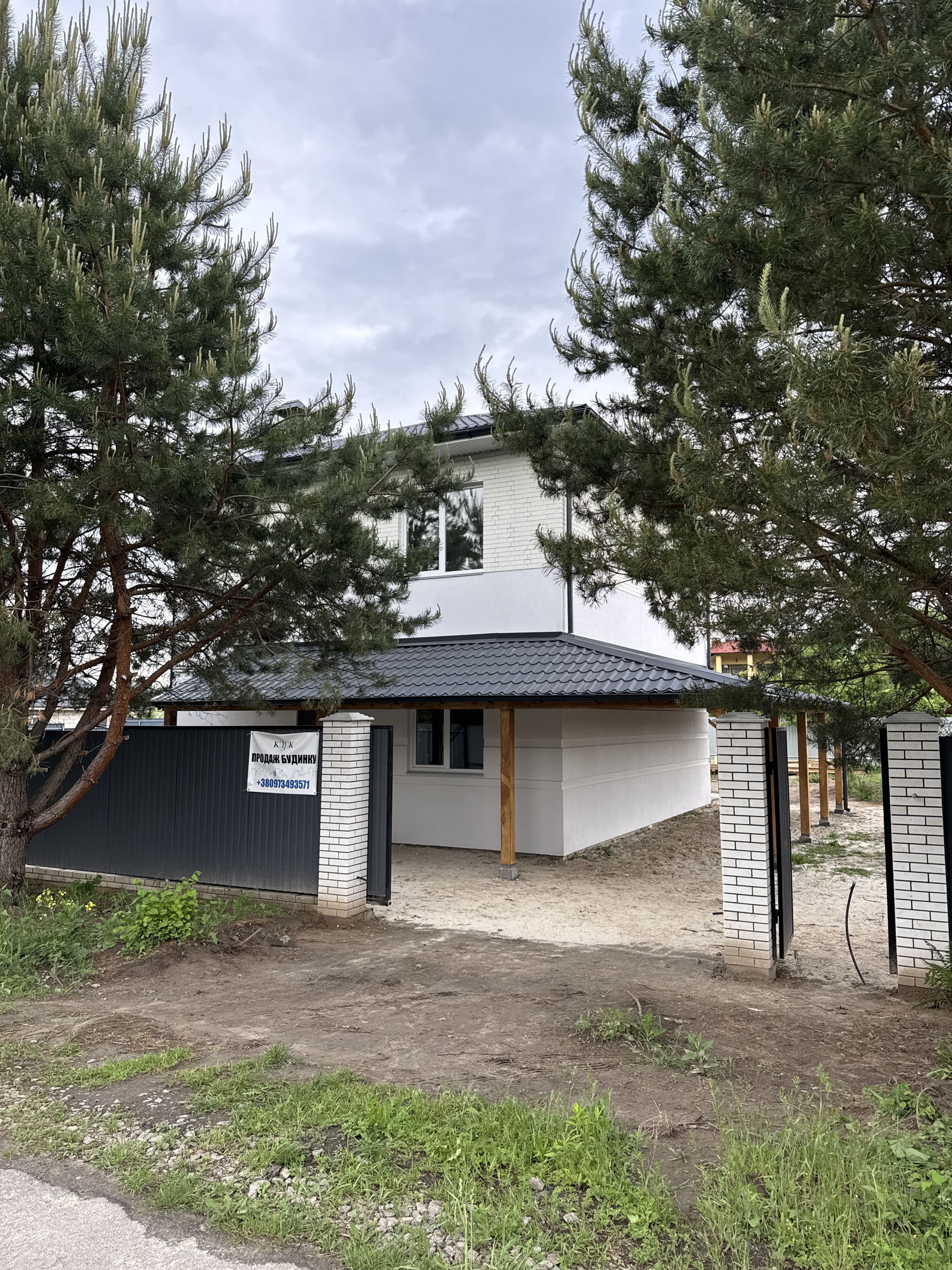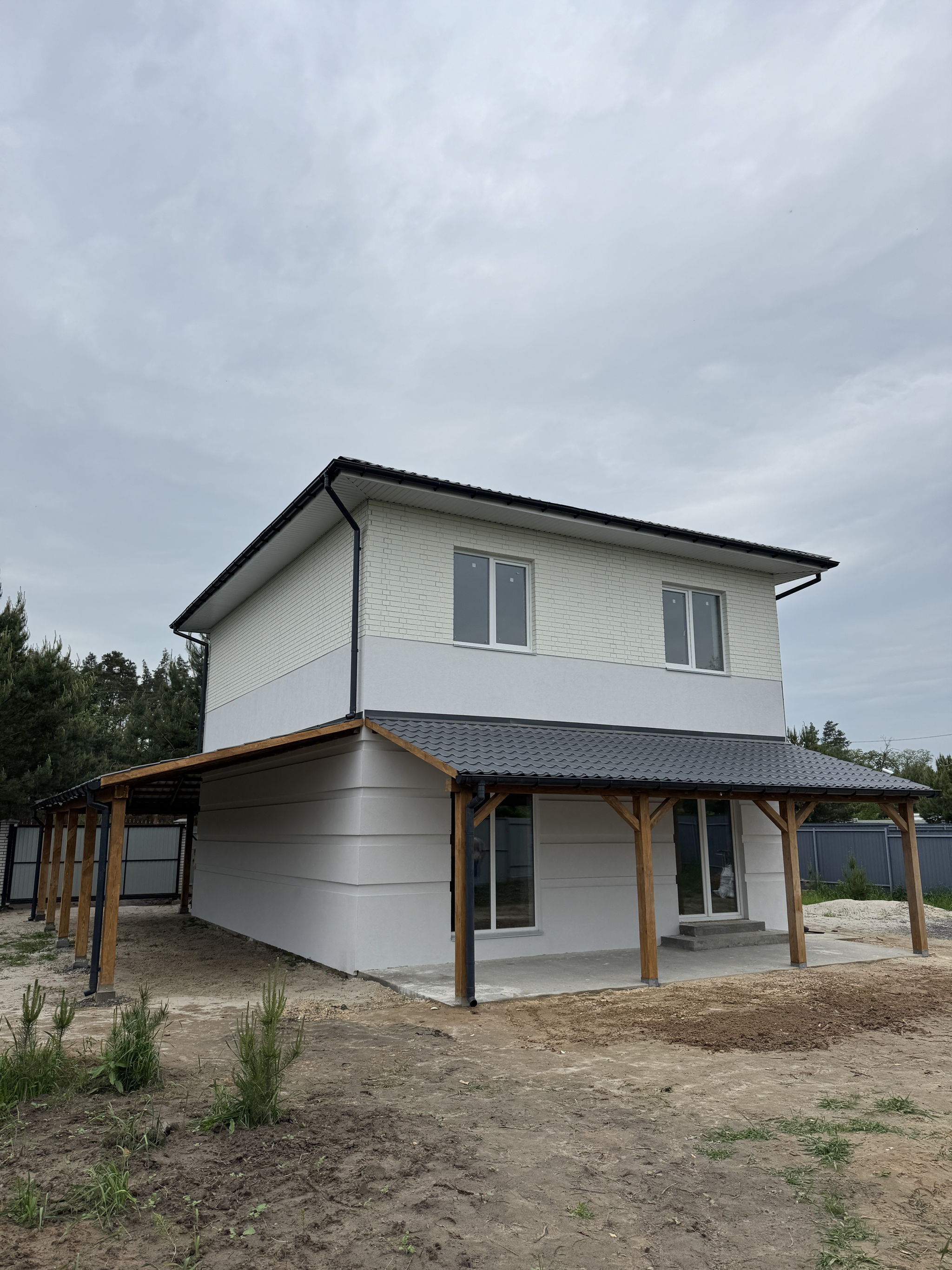 Продається сучасний двоповерховий будинок з терасою в селі Бобриця, Київська область (біля Білогородки), зручний виїзд на Житомирську трасу, 20–30 хвилин до Києва.