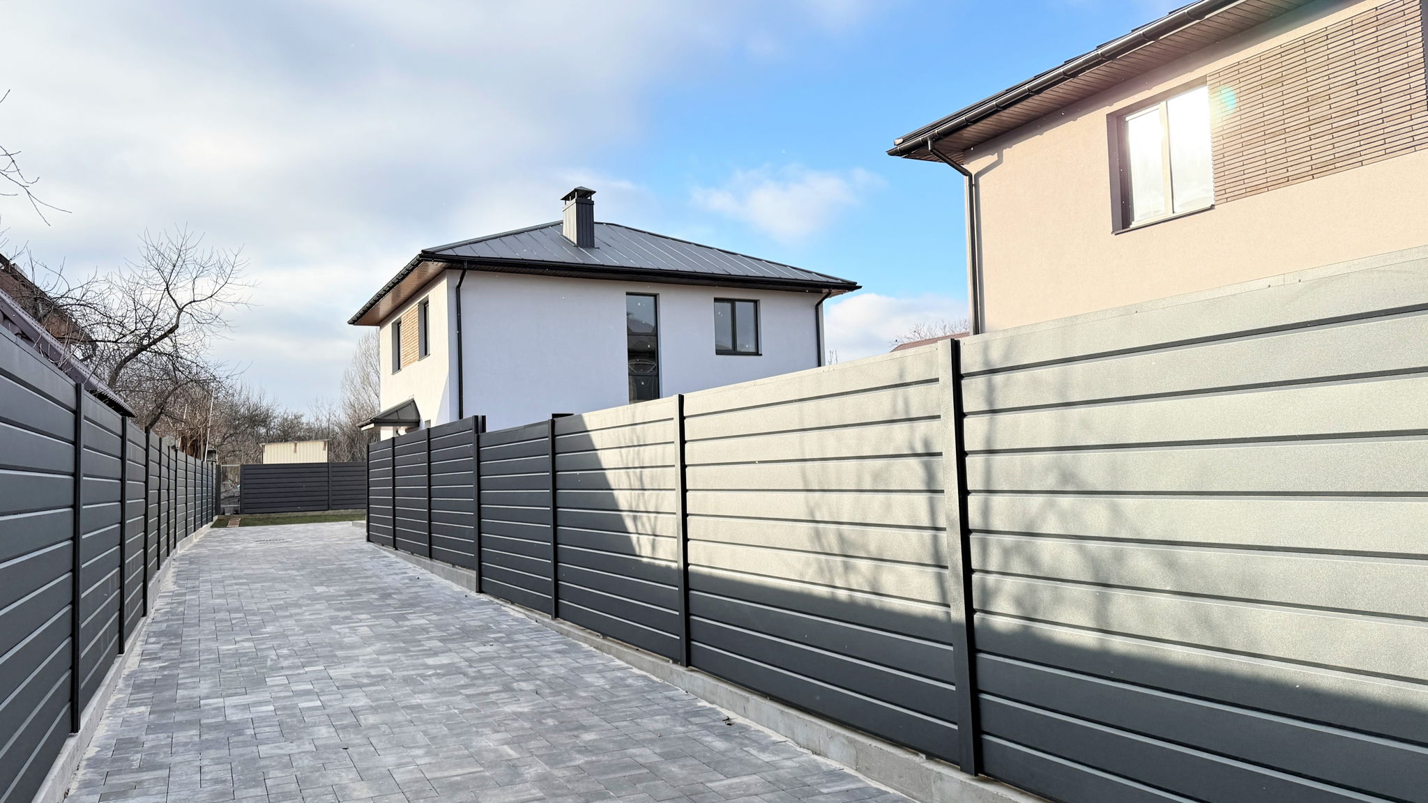 - огорожа з парканом (профлист + колони з декор. блоків) з бетонним фундаментом по периметру всієї ділянки;