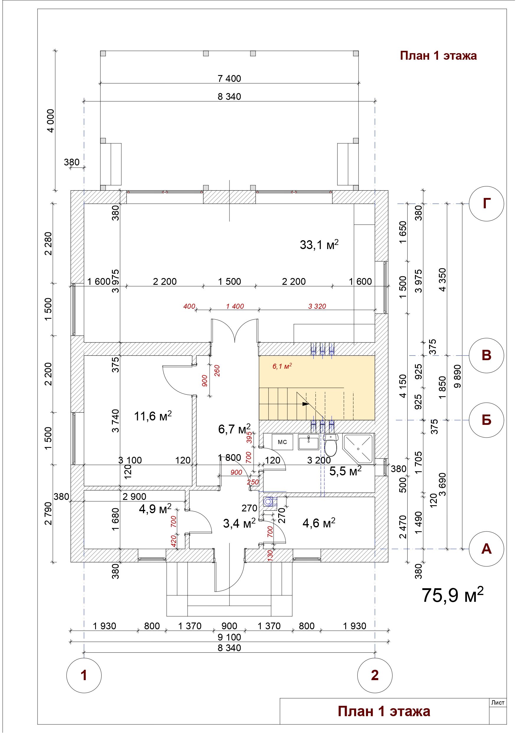- по периметру будинку бетонні вимощення;