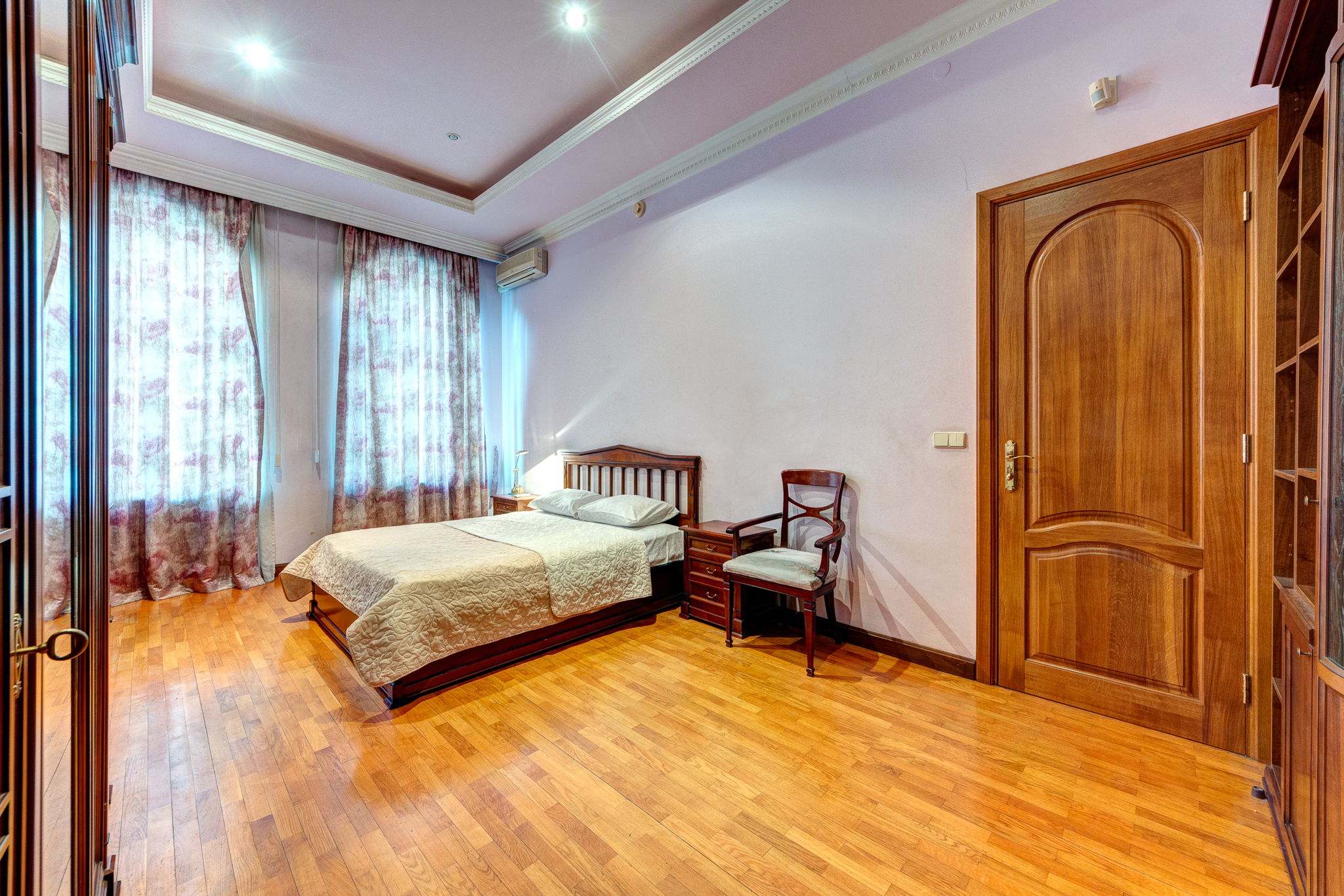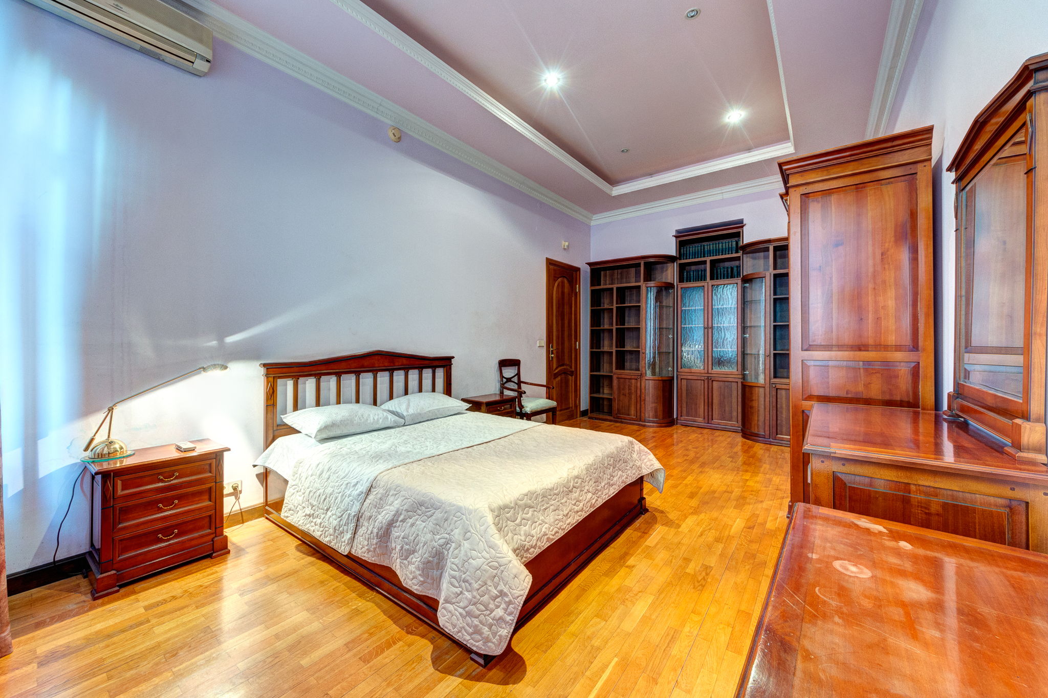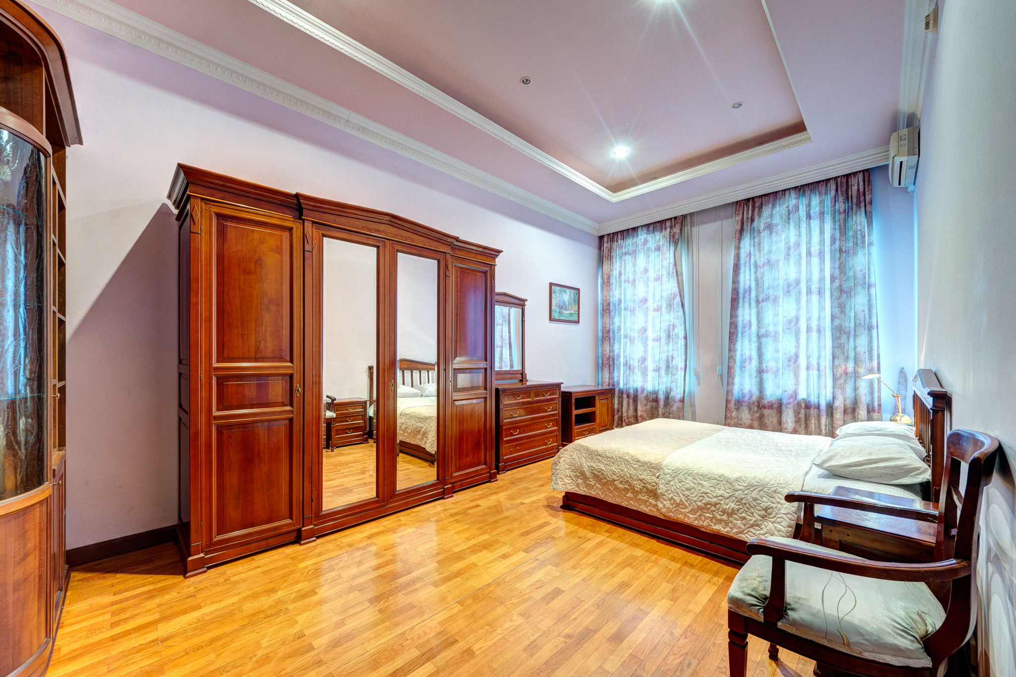 Двоспальні ліжка, шафи, кондиціонер, комоди, парні тумбочки та дзеркала це все спільне у 2х кімнатах, відмінності лише у візуальному вигляді. В одній зі спалень є робочий стіл і вихід на балкон.
