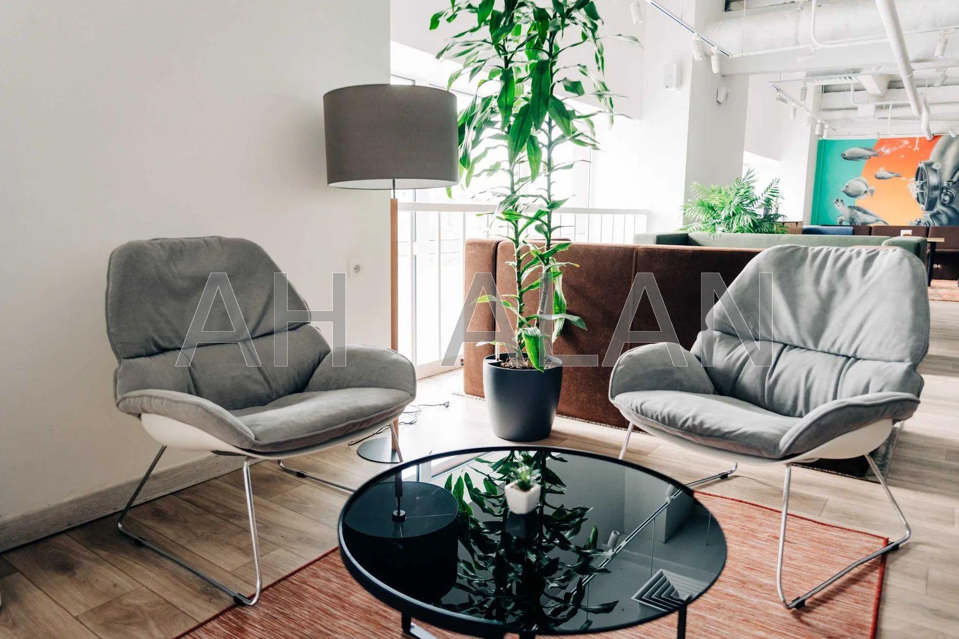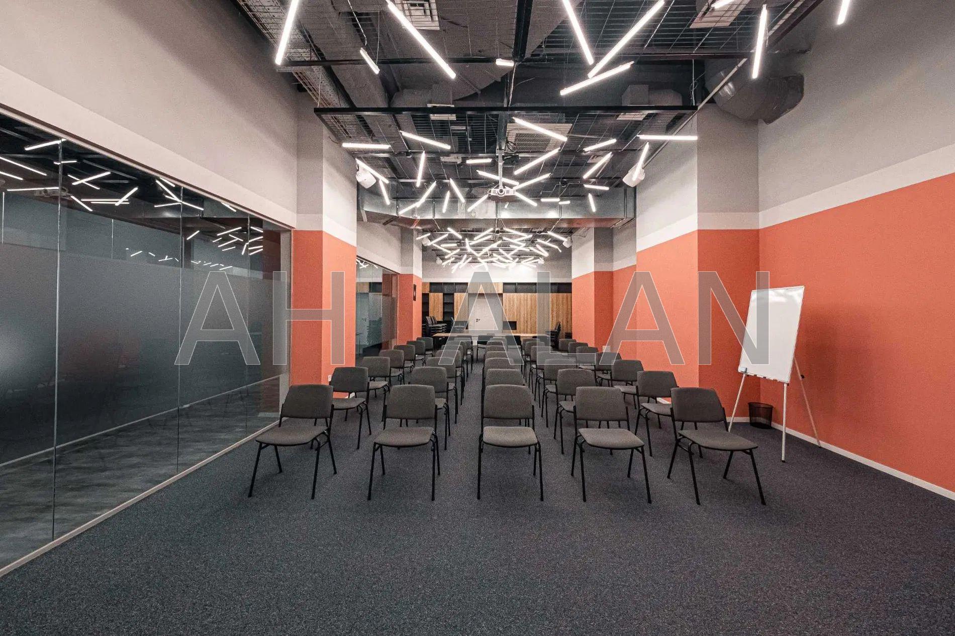 Складається із зони рецепції, 4 кабінетів, 2 санвузлів, кухні, переговорної кімнати.