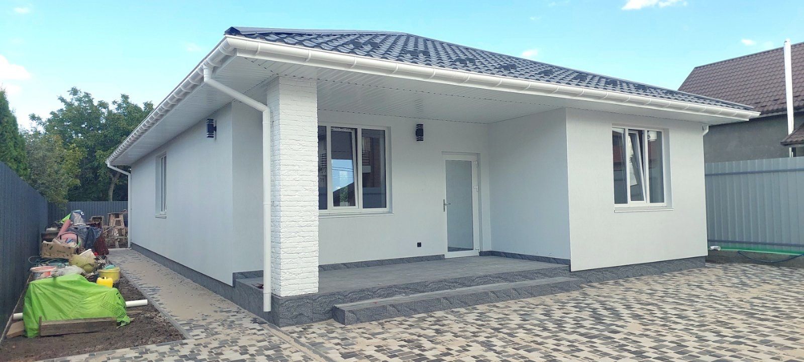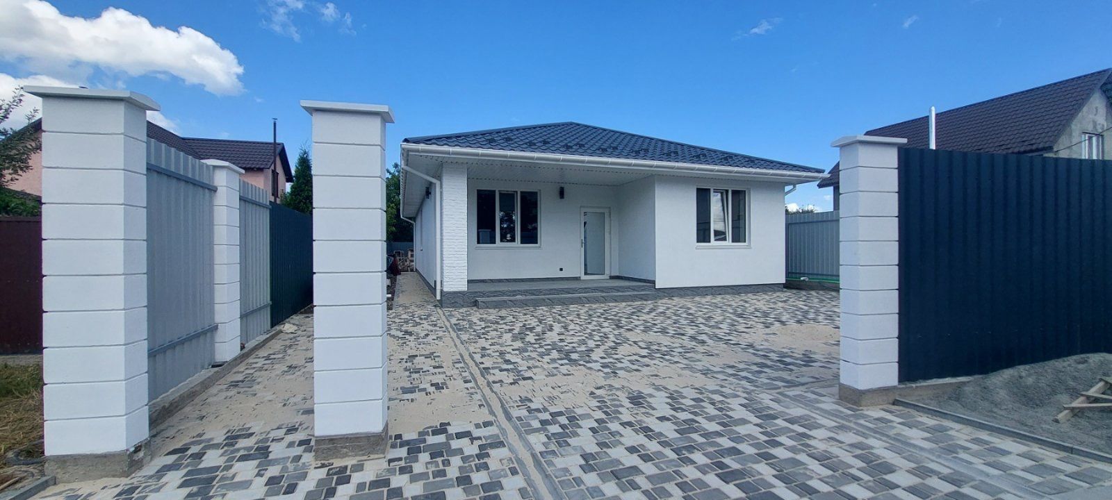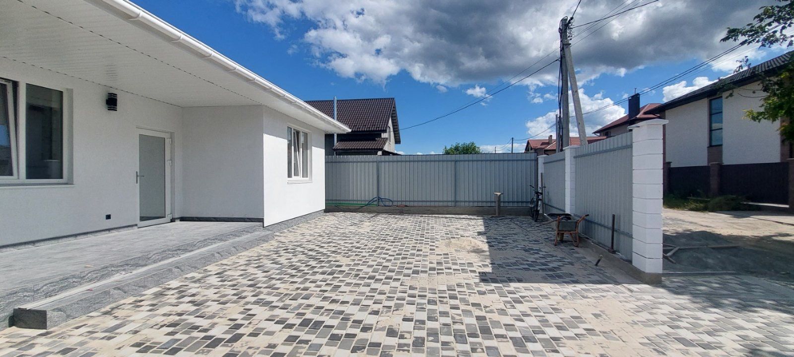 Бетонована (+ бруківка) відмостка по периметру будинку і паркомісця.