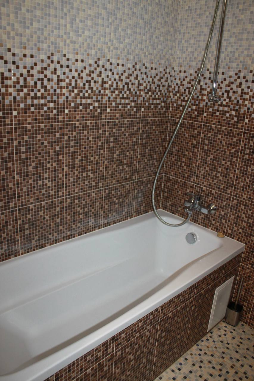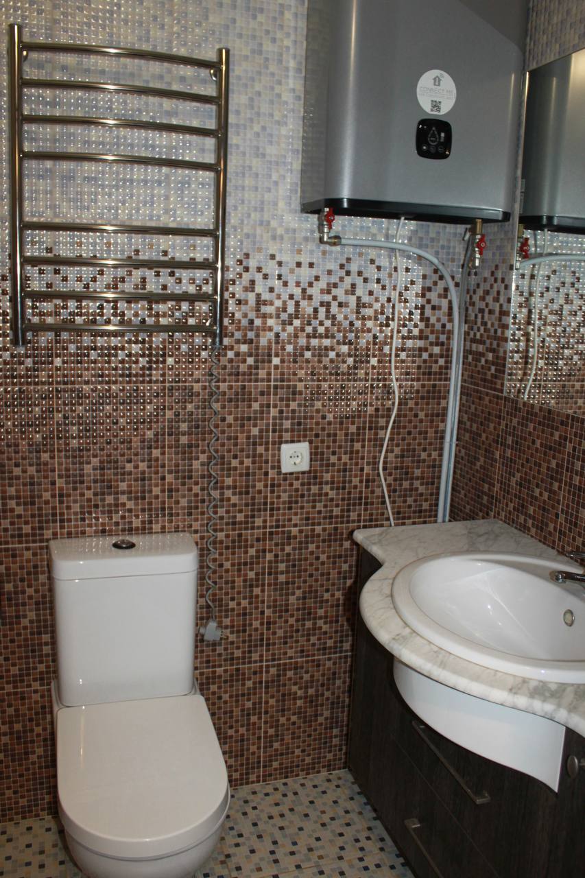 Холодильник, пральна автомат, бойлер, кондиціонер. Санвузол суміжний облицьований гарною плиткою.