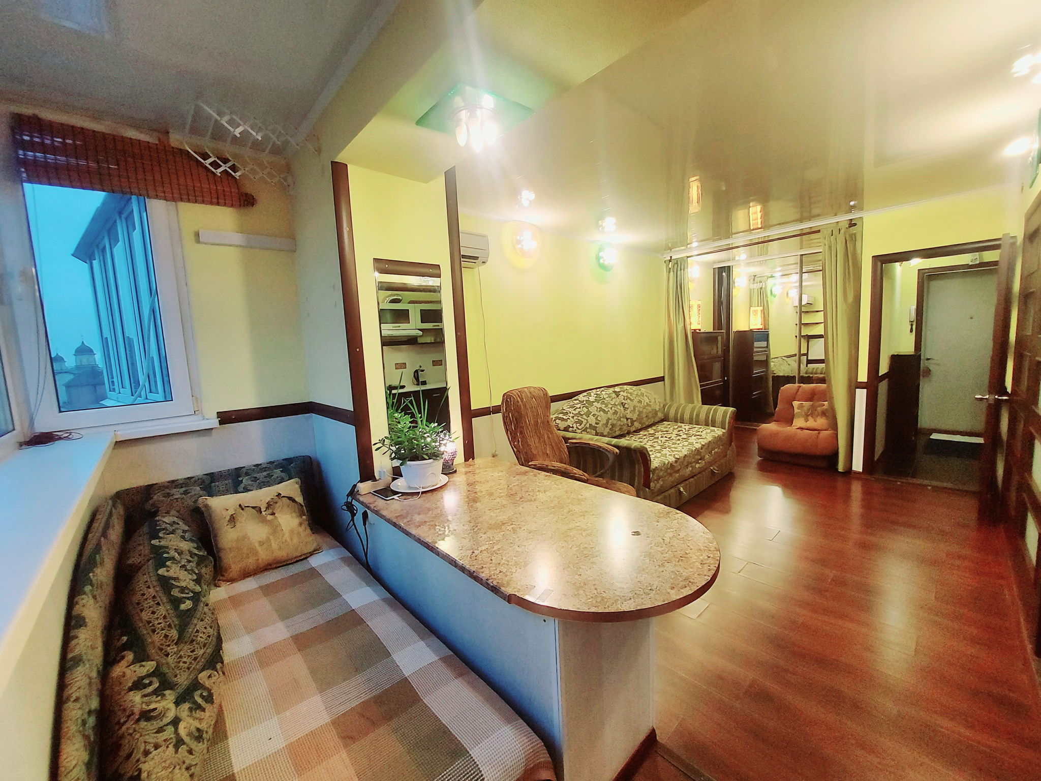 Прекрасная 1-комнатная квартира-студия, хороший евро-ремонт, видовая, 32 м.кв. Жилая 18, \ кухня 6, \ санузел 3 м.кв.