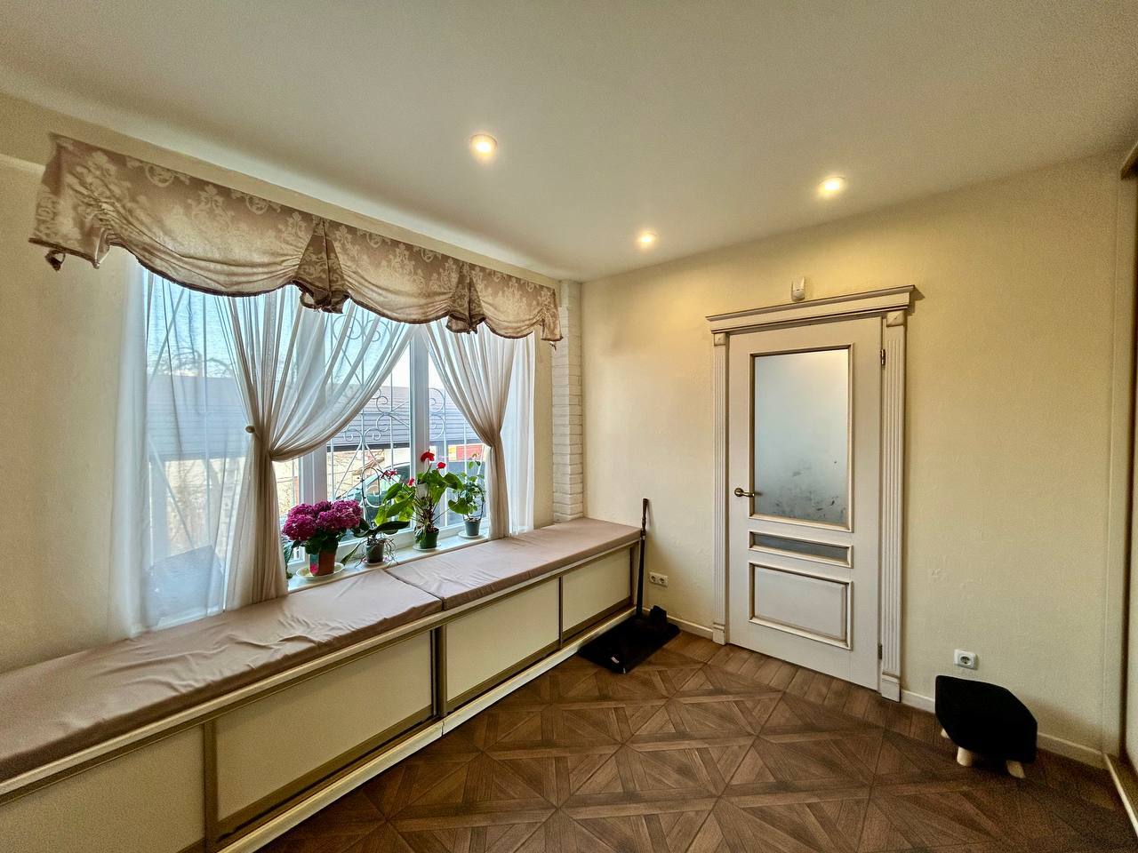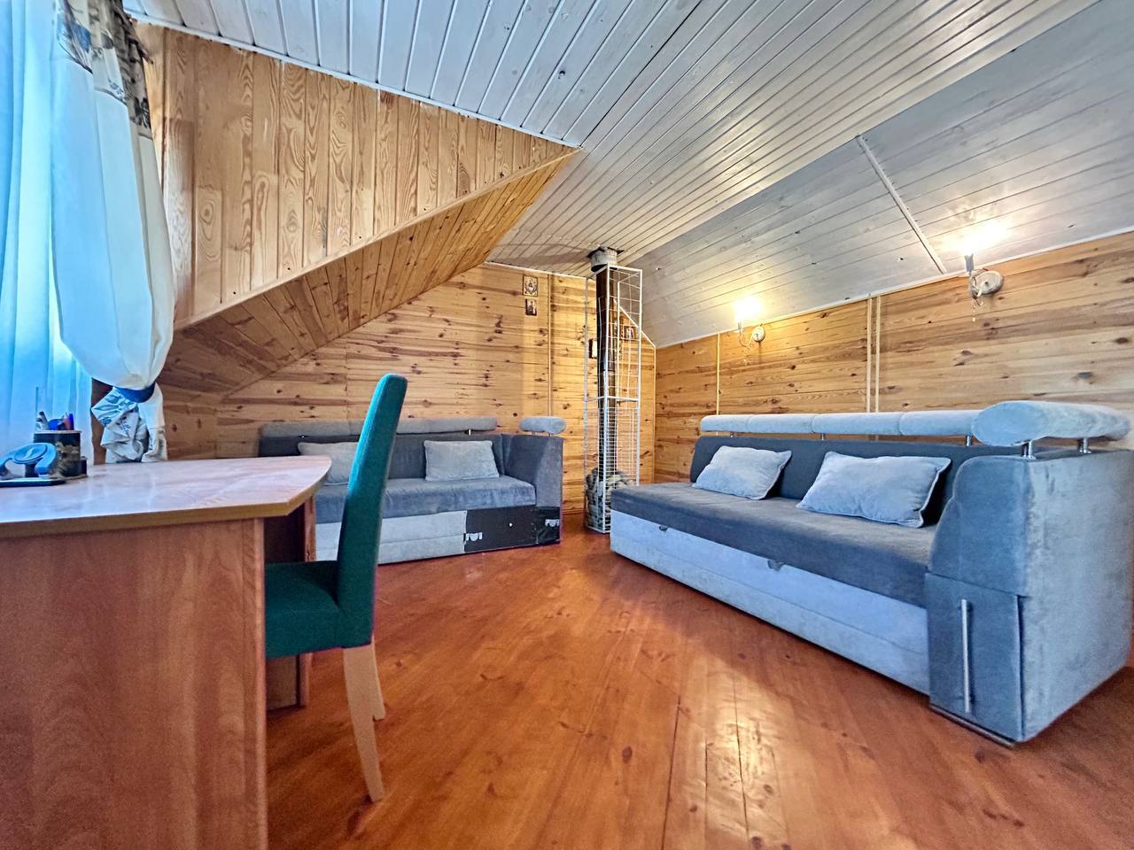 - Житлова площа складається з однієї кімнати на першому поверсі, використовується як вітальня і п’яти кімнат на другому поверсі, використовуються як спальні.