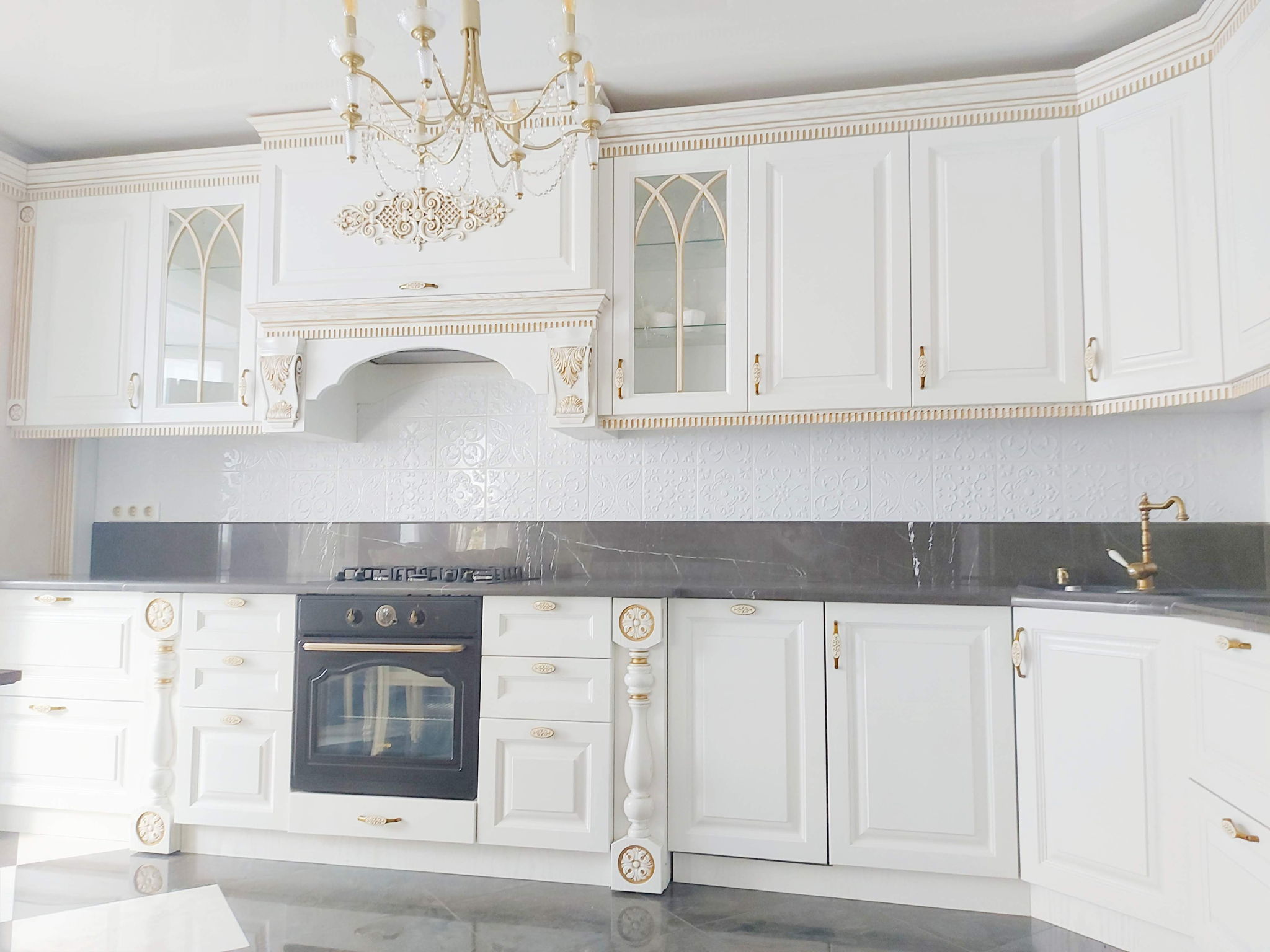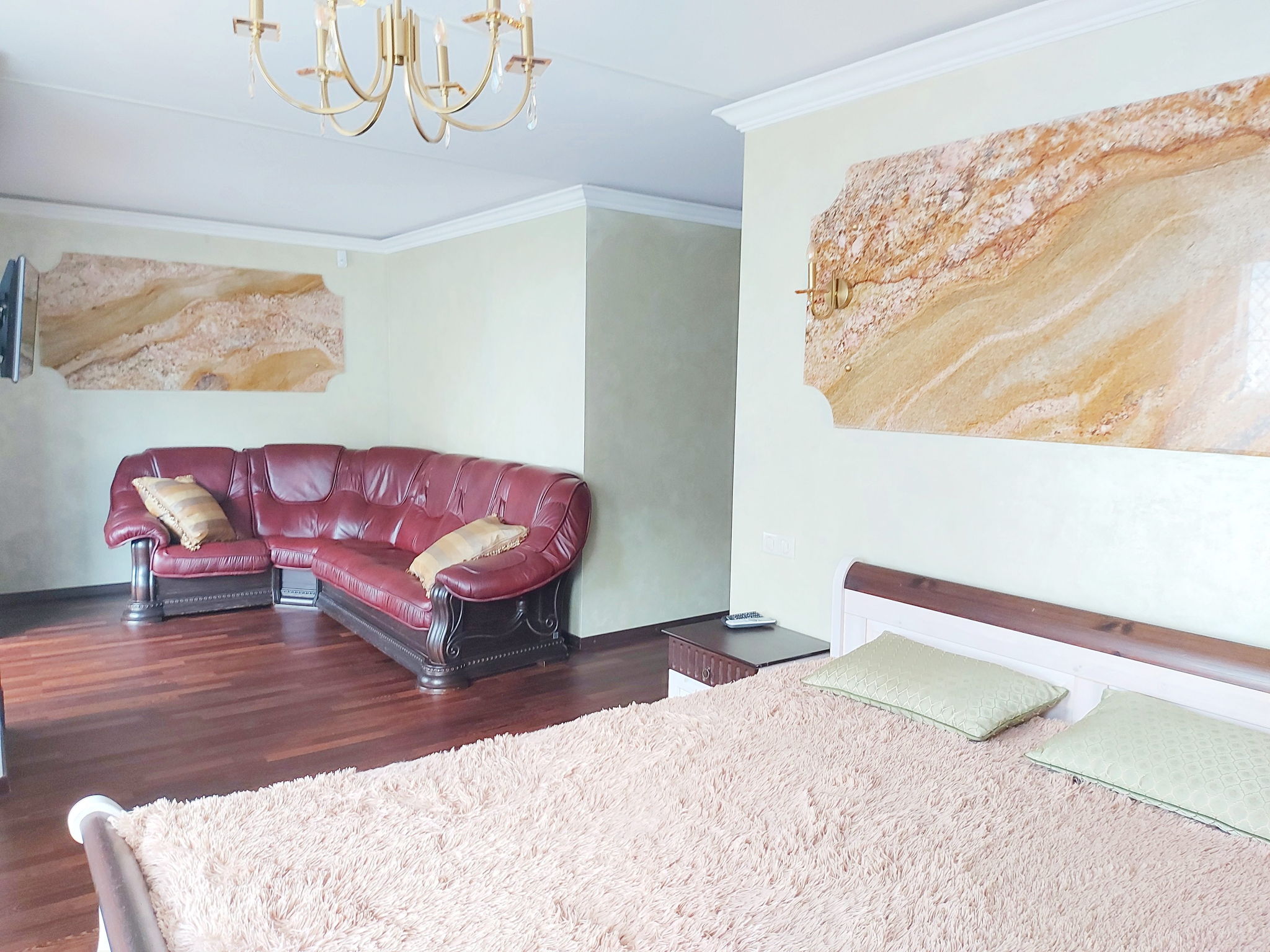 Якісні матеріали, паркетна дошка, мармур, граніт, гіпс, дерево, керамограніт. Столярні вироби -дуб. Кухня з ясеню.