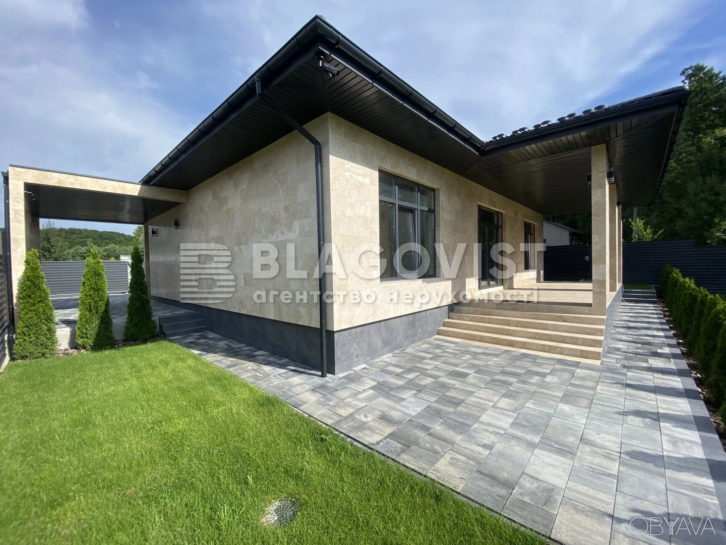 • Київська, Бучанський, Горбовичі, 1 поверх., площа: 184,0 кв.м, 3 кімн., ділянка 9,0 сот; Одноповерховий будинок у лісовій частині. Ділянка – 8,6 соток. Крита тераса – 28м2, навіс під машини – 23м2. Кухня-вітальня 43,5 м2 з виходом на криту терасу, 3 спальні, господарська спальня зі своїм санвузлом і гардеробом, велика вбиральня, окрема котельня та пральна, гостьовий санвузол. Відеоспостереження ділянки та Сигналізація будинку. По периметру встановлено паркан із металопрофілю; Q-9231; Ціна: 215 000 USD